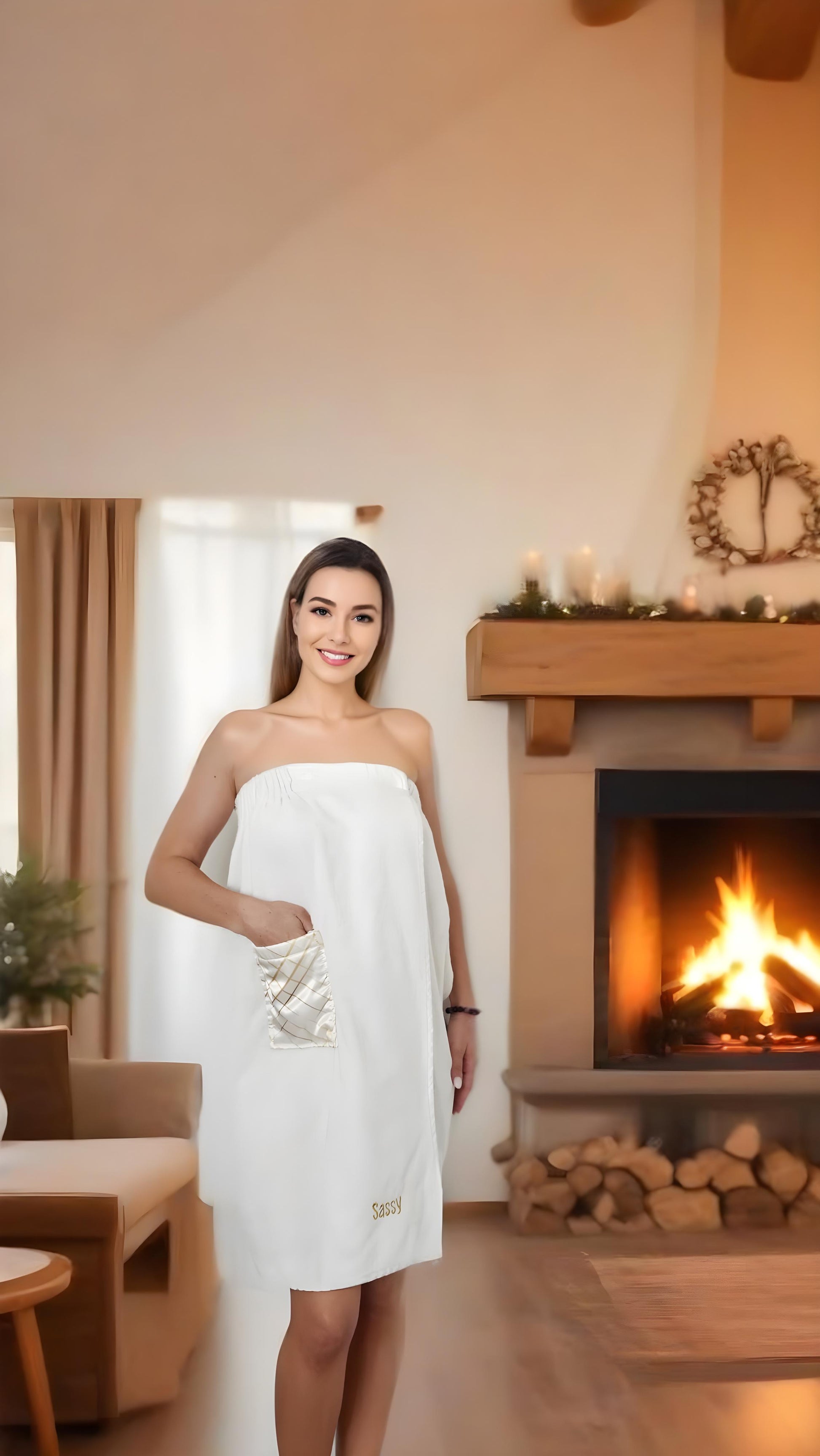 Its adjustable closure provides a snug and secure fit, allowing you to move freely while keeping you cosy and stylish. Whether you are lounging by the pool, enjoying a spa day, or simply unwinding at home, the pocket for your body wrap ensures that your phone, keys, or other small items are always within reach.